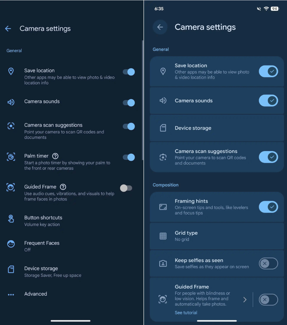 De nieuwe interface werd eerder al op de Pixel 10-modellen geïntroduceerd. Nu zijn de eerder verschenen Pixel-toestellen aan de beurt. De opnameknop is vernieuwd met een transparante ring, er zijn wat andere vormen te zien en de interface is aangepast qua lettergrootte en snelkoppelingen. Ook zijn er een aantal pictogrammen met dynamische kleuren verminderd. Verspreid over de applicatie zie je de wijzigingen terug.