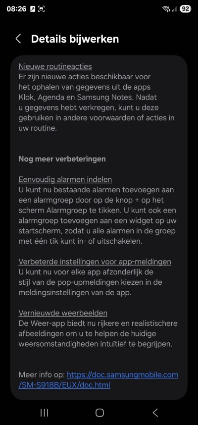 De update wordt zoals gezegd nu uitgerold voor de Galaxy S23-serie. Dit betekent dat de update gedownload kan worden voor de Samsung Galaxy S23, de S23+ en de S23 Ultra. Voor de Samsung Galaxy S23 FE zal de update op een later moment beschikbaar komen. Je krijgt een melding op je toestel als je de update kunt downloaden. Wil je daar niet op wachten, ga dan in de Instellingen naar software-update en controleer handmatig.