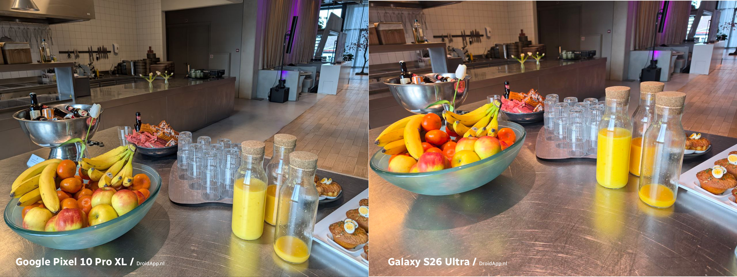 We hebben alvast één vergelijkingsfoto voor je, tussen de Google Pixel 10 Pro XL en de Galaxy S26 Ultra. Zie hieronder het verschil. Wat direct opvalt: de Samsung heeft felle, verzadigde kleuren, waar de Pixel het meer neutraal en waarheidsgetrouw houdt.