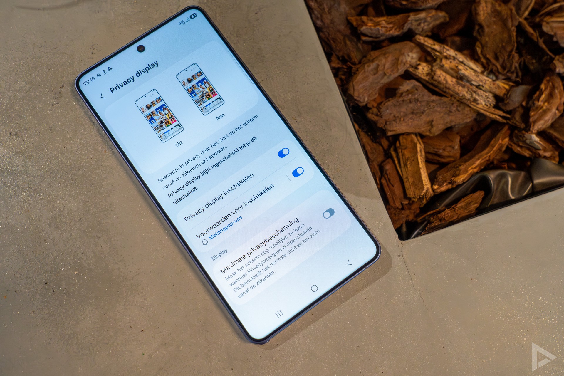 Een opvallende functie die we vooral kennen van screenprotectors: Privacy Display. Nu is deze functie in de Samsung Galaxy S26 Ultra verwerkt (en dus niet in de twee andere modellen). Niet alleen software, ook hardwarematig wordt het scherm donker gemaakt voor degenen die niets hoeven te zien op je telefoon. Met Privacy Display wordt datgene wat je wilt, zwart gemaakt als je vanuit een andere hoek naar het scherm van de S26 Ultra kijkt. Je kunt instellen dat dit voor alles geldt, maar je kunt ook aangeven dat dit alleen bij bepaalde apps moet gebeuren, of dat alleen meldingen ‘vanaf de zijkant’ niet zichtbaar zijn. Handig in een volle trein, zodat anderen niet zomaar wat zien bij het meegluren.