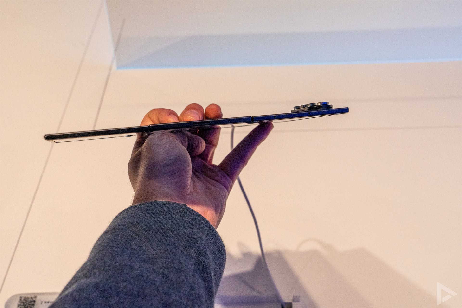 Samsung voorziet het toestel van een dun design, waarbij de dikte uitkomt op 3,9 millimeter, of 4,2 millimeter ter hoogte van de cameramodule. Doordat het toestel tweemaal gevouwen kan worden, is het met een dikte van 12,9 millimeter gesloten wel een vrij dik toestel. Het toestel voelt degelijk en ziet er goed uit. Klap je het toestel open, dan heb je echt een gigantisch scherm voor je, dat vergelijkbaar is met een doorsnee tablet. Hiermee is het een stap groter dan het scherm van de huidige foldables.
