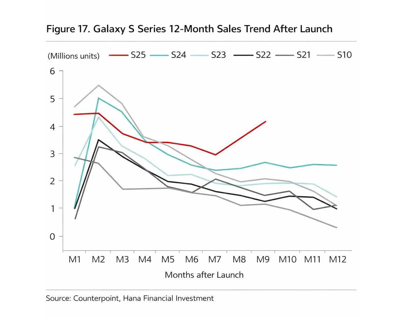 Na een piek rond de lancering van de Galaxy S25-serie gingen de verkopen lekker, maar nog altijd kiezen veel consumenten voor een toestel uit de vijfdelige serie. De fabrikant komt in het nieuws, met dat de verkopen nog altijd erg goed gaan. Opvallend, want de Samsung Galaxy S25-serie is bijna een jaar geleden aangekondigd. Toch lijken er genoeg mensen te zijn die niet wachten op een toestel uit de Galaxy S26-reeks. Dit blijkt uit cijfers die gedeeld worden door Counterpoint Research en Hana Financial Investment. Samsung zelf deelt geen gegevens.