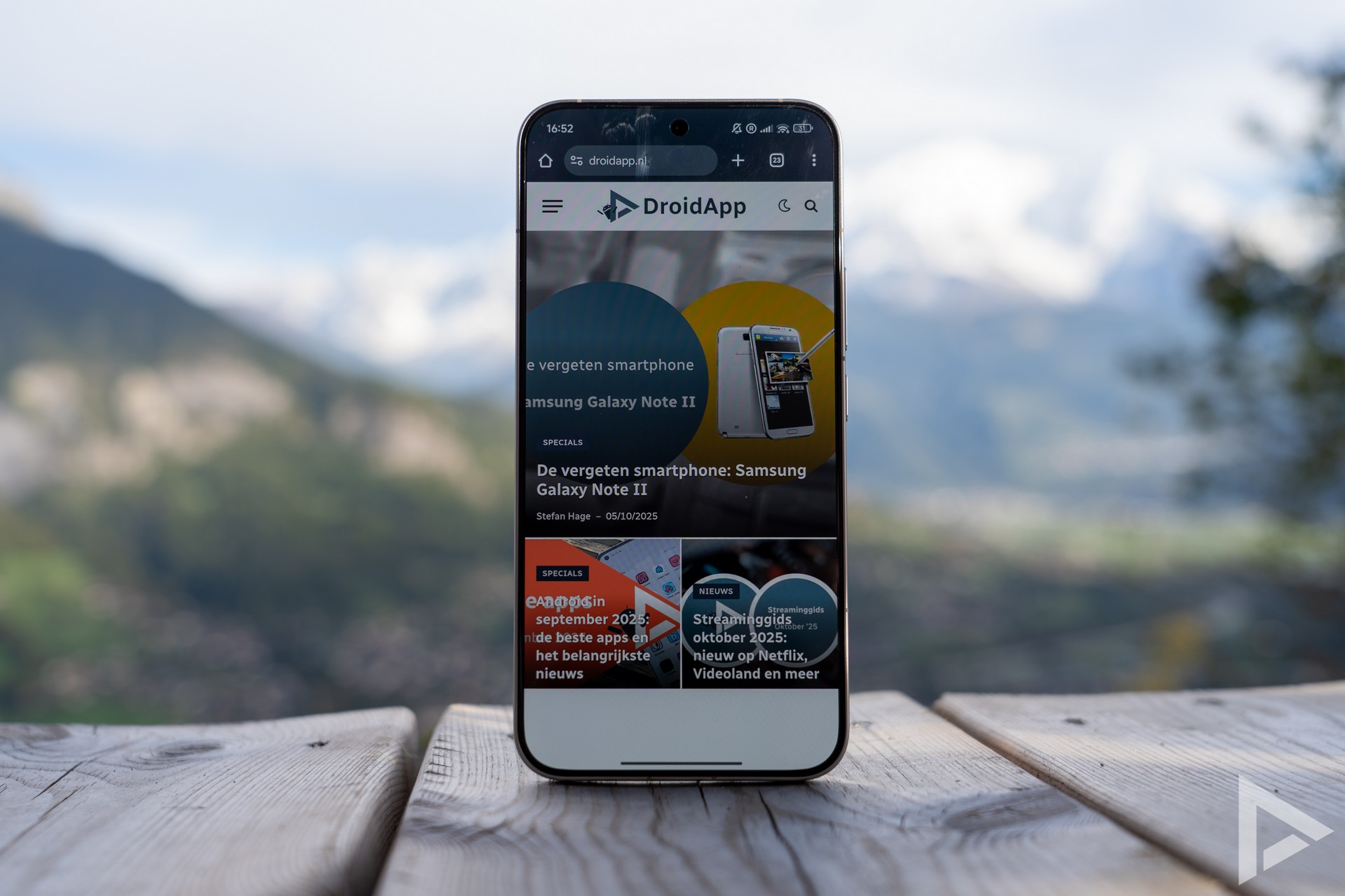De telefoon van Xiaomi kan overweg met een maximale helderheid van 3200 nits. Het scherm is perfect afleesbaar op zonnige dagen. Ook in de Zwitserse bergen ervaren we geen enkel probleem op de dagen met veel zon. Het toestel is vervaardigd uit aluminium en dat voelt goed aan. Daarbij ligt de 15T Pro door de lichte afrondingen aan de achterkant, ook prettig in de hand. We hebben de smartphone in de zilveren kleur en heeft een premium voorkomen.